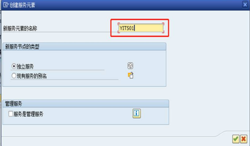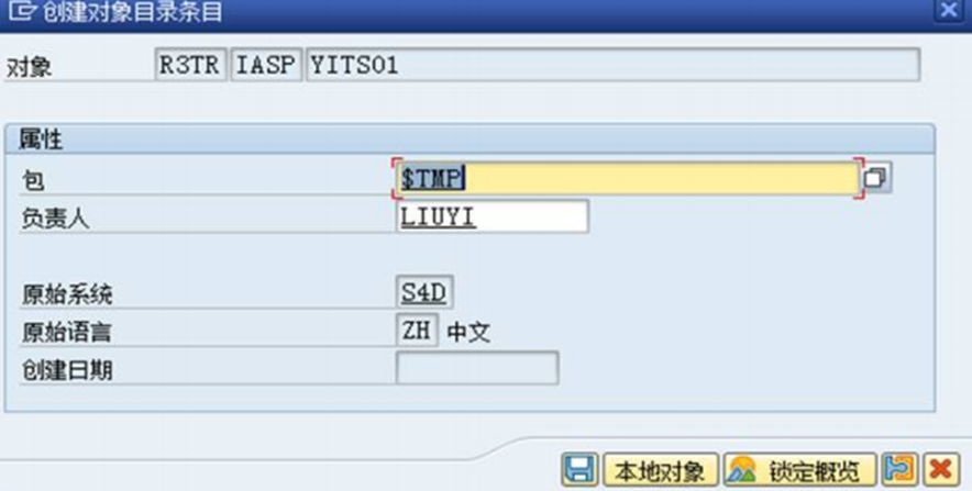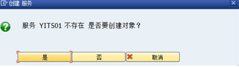 - ITS不存在,回车创建。输入服务名,事务码,选择package。