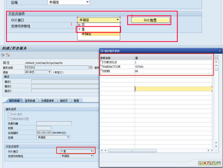 ·GUI接口选择Y(是),然后点击GUI配置,输入以下三个参数