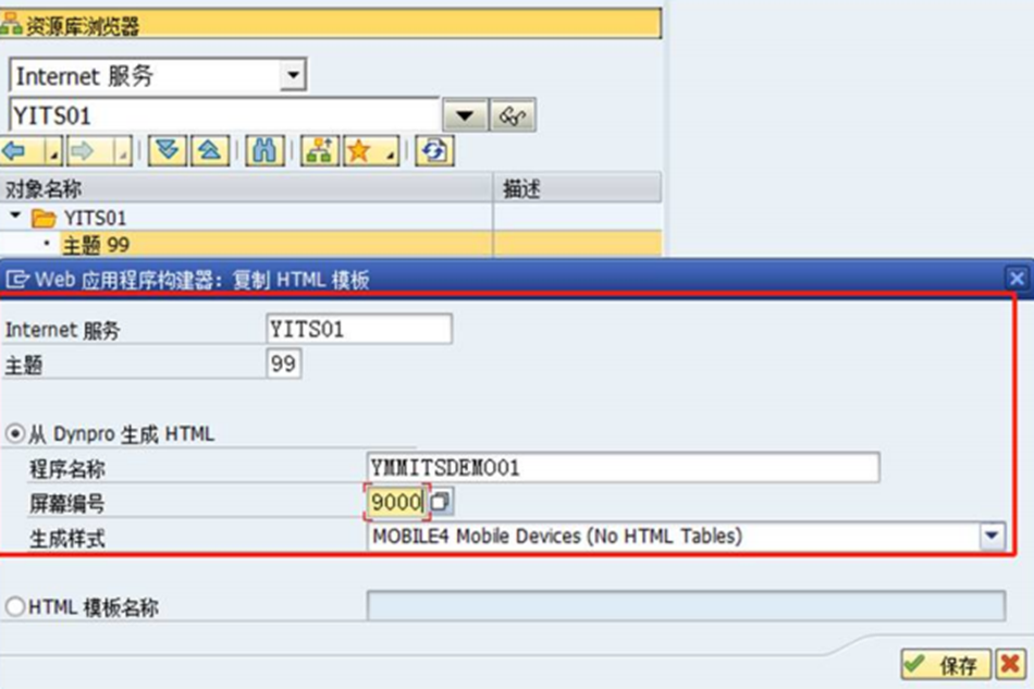 *Internet服务、主题、程序名称一般会自动带出,需要创建哪个屏幕的HTML则输入哪个屏幕,如果程序中有多个屏幕则需要创建多次。