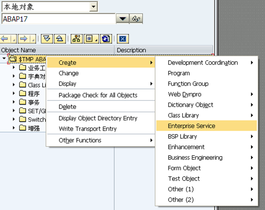 在相应对象上右键选择Create→Enterprise Service,并执行该菜单功能,进入如下图所示界面: