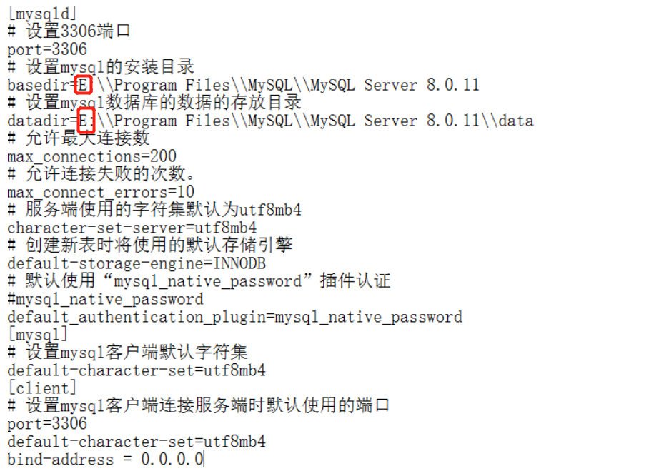 3、复制解压MySql到C盘下新建的mysql文件夹中,点击my.ini,修改里面的盘符,更改为自己放置MySql的盘