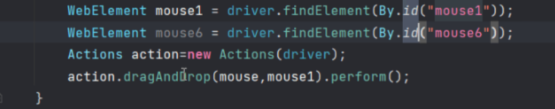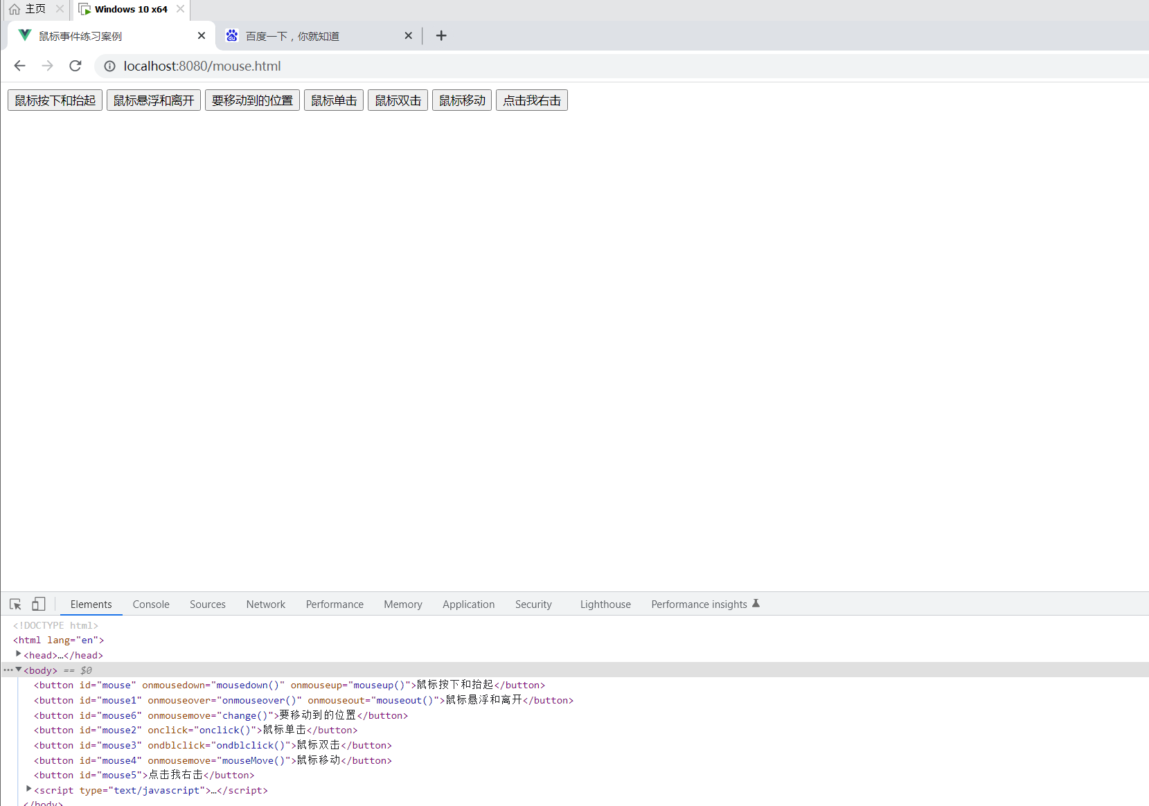 2、进行元素定位,mouse1就是测试网址下鼠标悬浮和离开的button的ID,mouse6就是测试网址下要移动的位置的button的ID