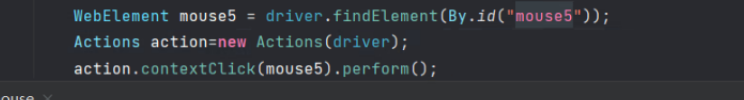 2、进行元素定位,mouse5就是测试网址下鼠标右键的button的ID