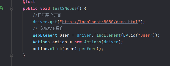 2、进行元素定位,mouse就是测试网址下鼠标按下和抬起的button的ID