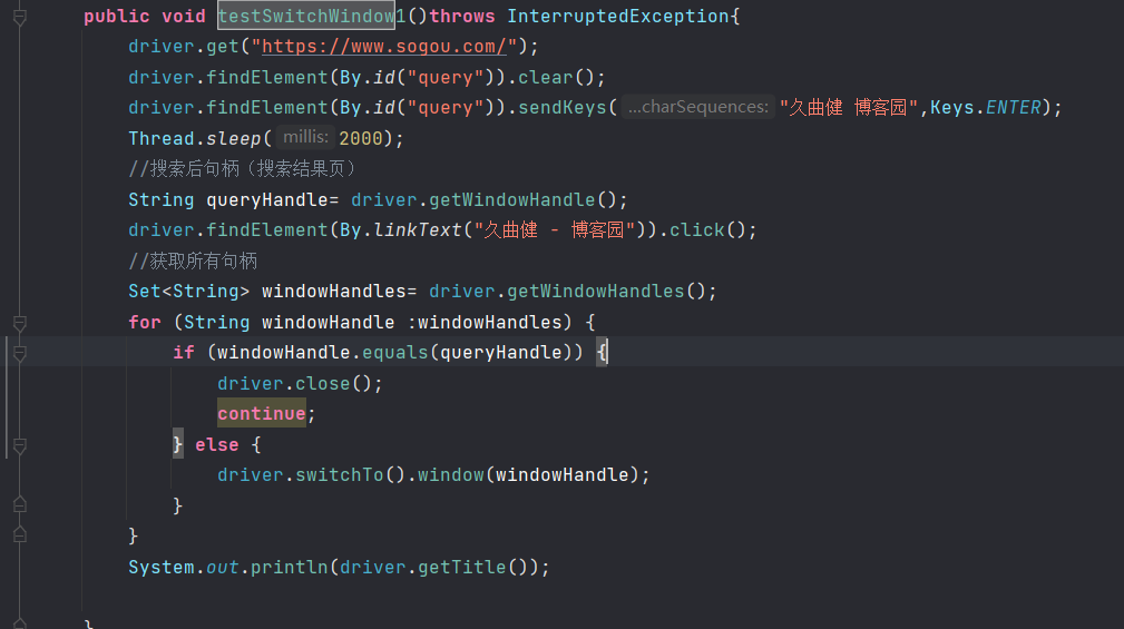 6、获取当前浏览器下的所有窗口句柄Set<String> windowHandles = driver.getWindowHandles();
