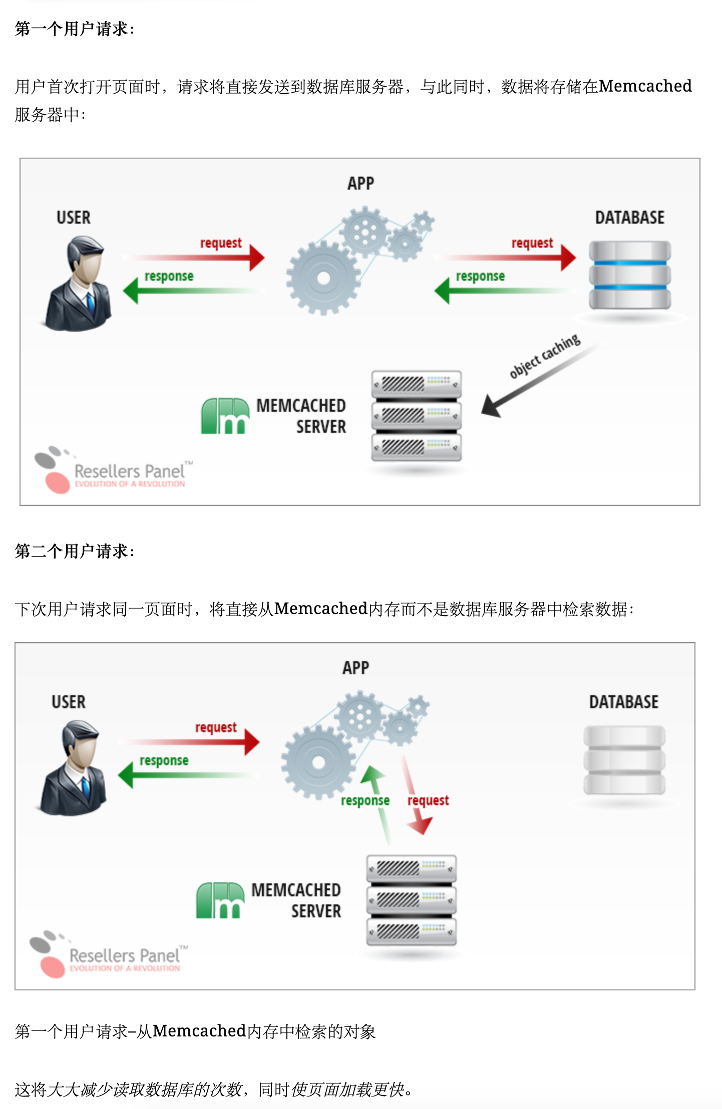 绝大多数的网站动态数据都是保存在数据库当中的,每次频繁地存取数据库,会导致数据库性能急剧下降,无法同时服务更多的用过户(比如MySQL特别频繁的锁表就存在此问题),那么,就可以让Memcached来分担数据库的压力。增加Memcached服务的好处除了可以分担数据库的压力以外,还包括无须改动整个网站架构,只须简单地修改下程序逻辑,让程序先读取Memcached缓存查询数据即可,当然别忘了,更新数据时也要更新Memcached缓存。