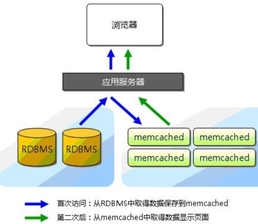 此时在MySQL前面试用Memcached的作用就出现了,通过Memcached在内存中缓存MySQL的查询结果,减少MySQL的访问,提升整体网站架构性能。