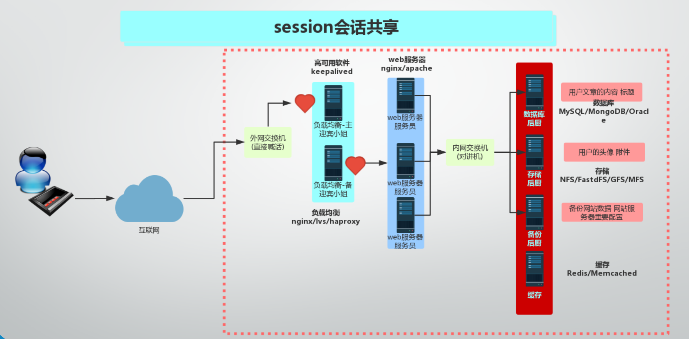 3. Memcached也用来共享存储集群架构所有Web阶段服务器的session会话数据。