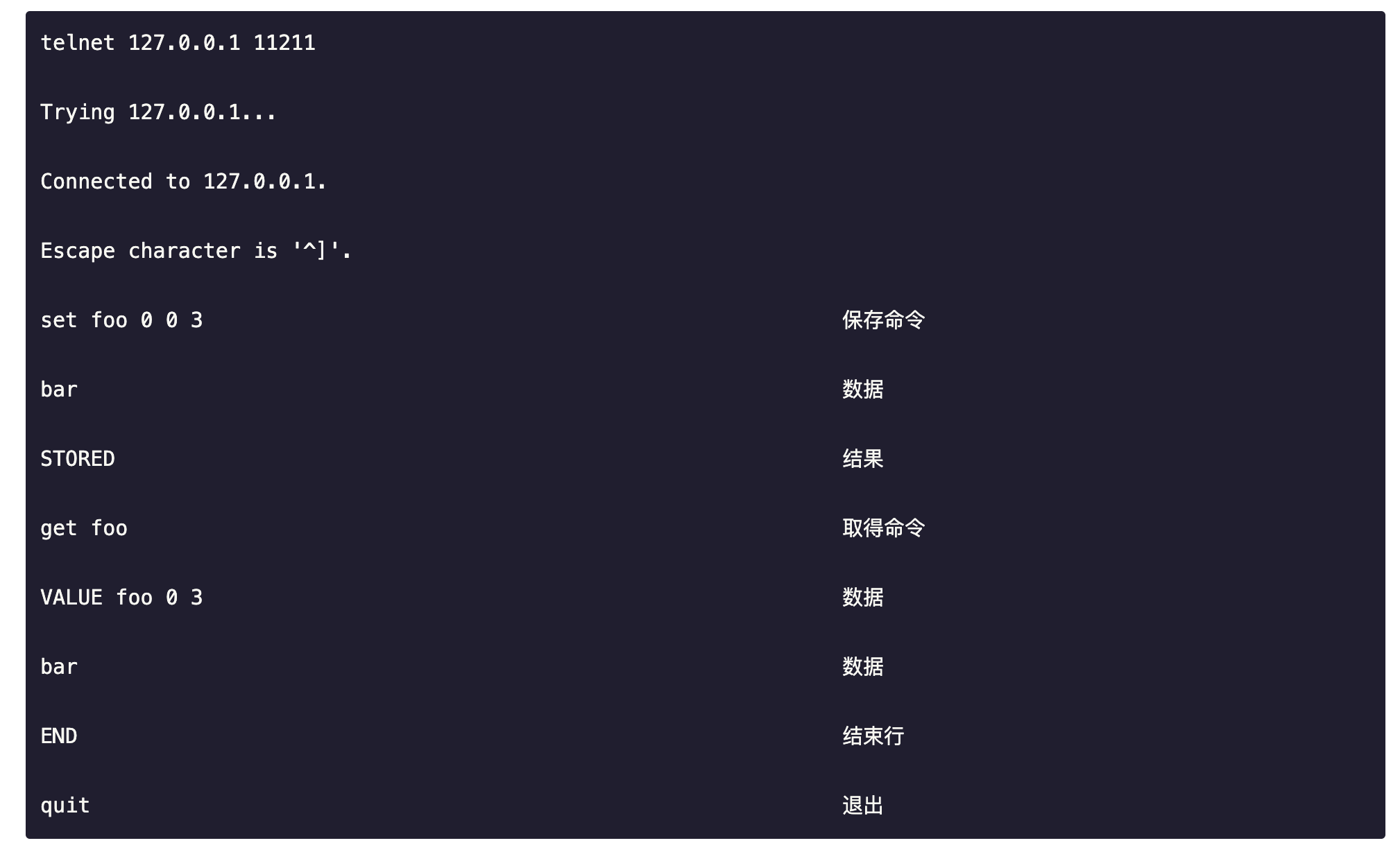 我们可以使用telnet、nc等命令,可以连接memcached服务端,进行数据操作。