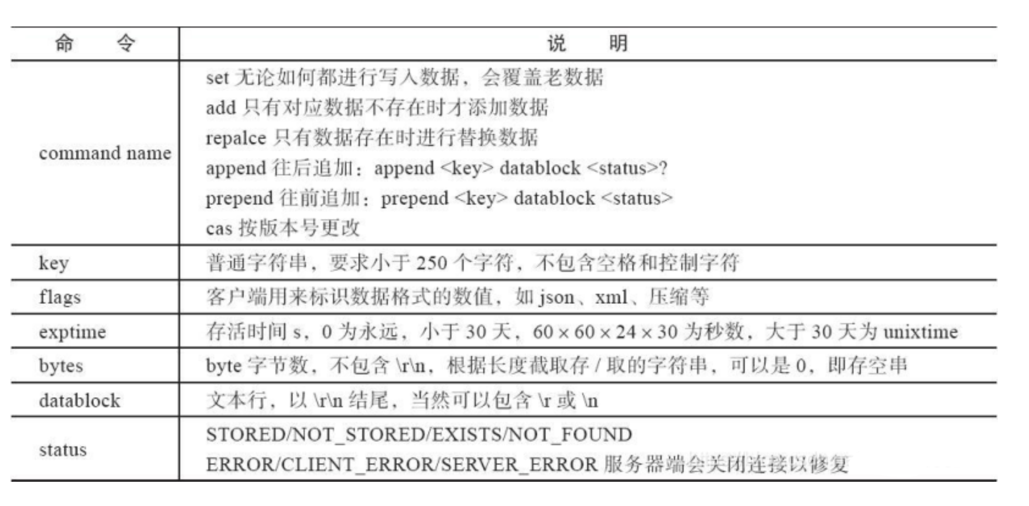 这里把memcached添加,查询,删除等的命令和Mysql数据库做一个基本类比,见下表: