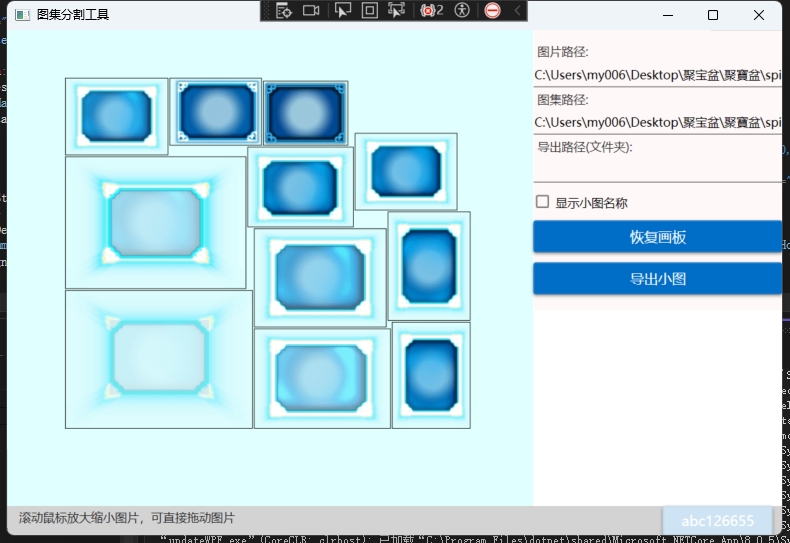 ImageSplit 是基于wpf 的应用程序,是自己一边学习,顺手完成的作品:软件显示图集信息并导出相应碎图。