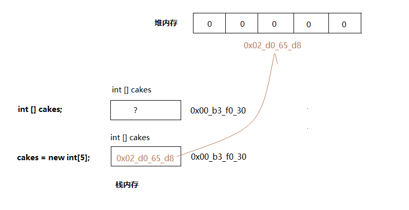 声明数组变量时不需要指定大小,也不会分配内存(只是在栈上分配一小块内存用于存储引用的内存)。