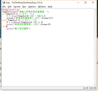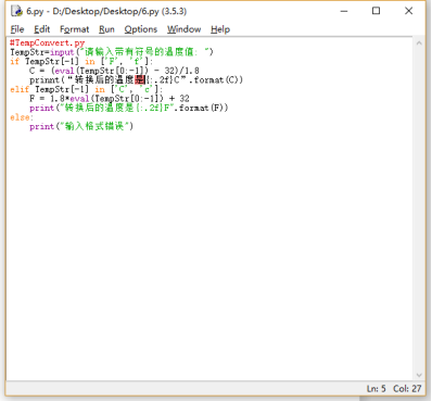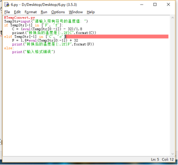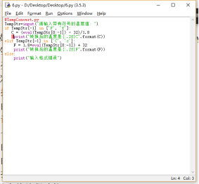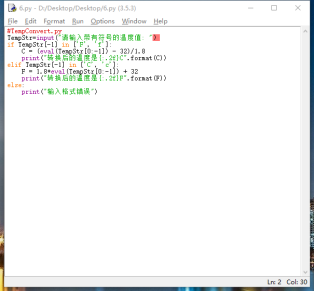 2 行第一章课本的温度转换示例程序。在运行过程中