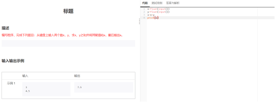 编写程序,从键盘上输入两个数x,y,求x,y之和并将其赋值给s,最后输出s。