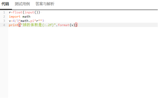 输出:球的体积,结果保留两位小数
