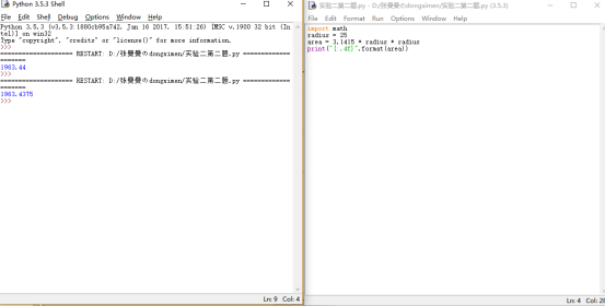 根据圆的半径计算圆面积,半径为25。请编写并运行如下代码: