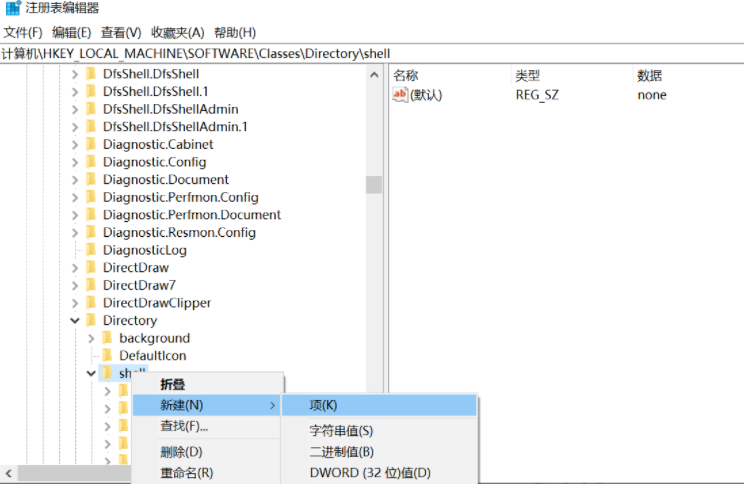 计算机\HKEY_LOCAL_MACHINE\SOFTWARE\Classes\Directory\shell