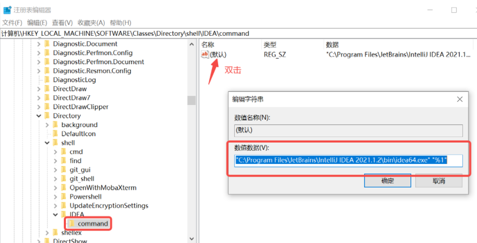 4. 在IDEA下面新增项command, 修改默认值为 "你的idea安装路径" "%1"