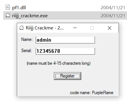 结合前面的调试分析,猜测主程序中隐含一个解密程序,当程序正确解密之后,才会调用pf1.dll
