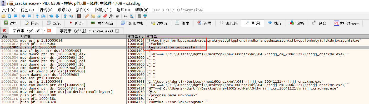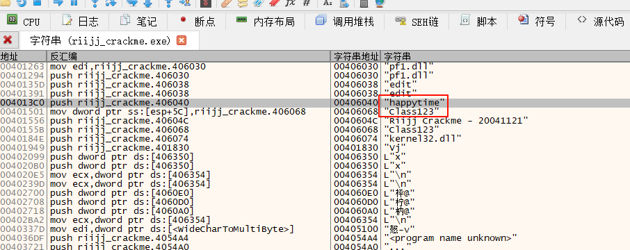 用x32dbg打开,打开字符串视图:
