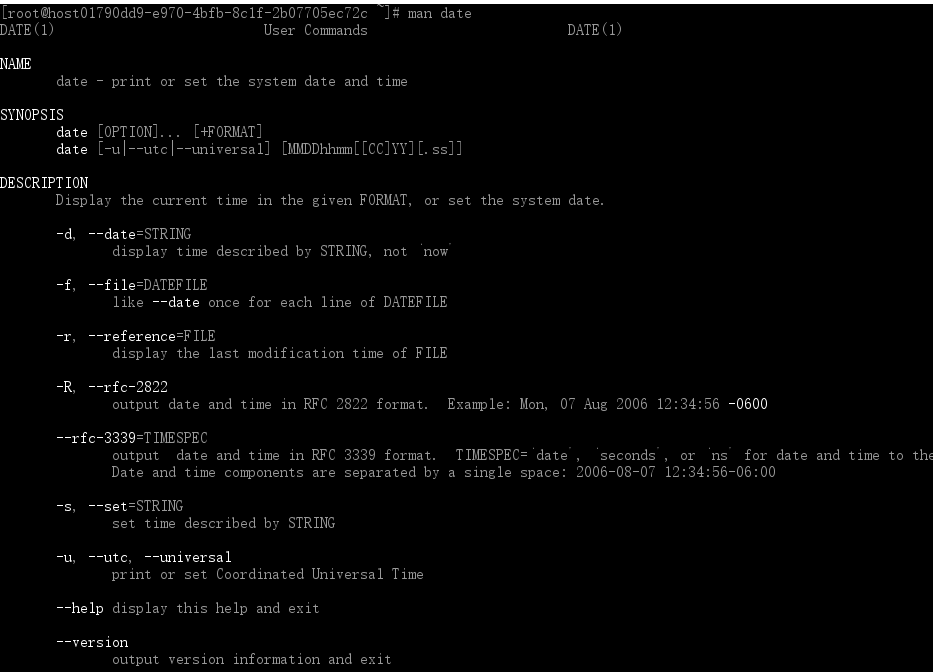 咦~不知道怎么使用date这条命令?没关系,就是找男人(man) 呀!喔!不是啦!这个man是manual(操作说明)的简写啦!只要输入”man date” 命令,就能清楚的显示date的详细说明和用法了。