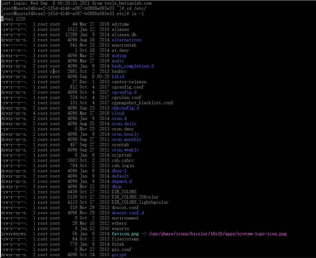 接下来就来感受下:cd /etc 这里面的文件多~