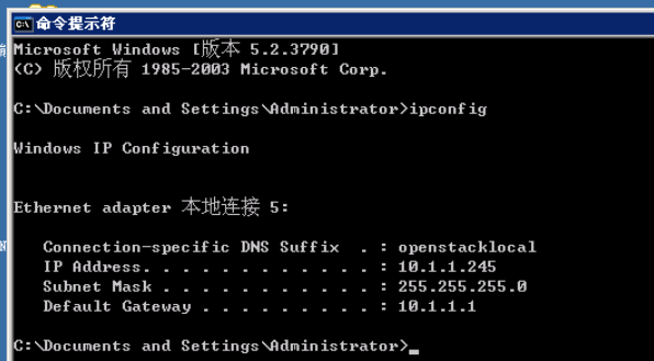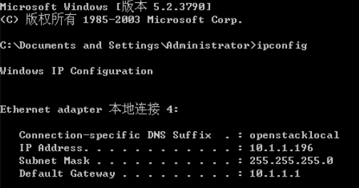 1、远程桌面方式登录到CA服务器,在CMD下查看本机IP地址: