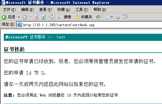 注:在本例中CA服务器IP为10.1.1.245,但在做实验过程中,IP可能会出现变动,要记住自己CA的IP,在后面实验过程中填写自己的IP,否则实验可能失败。