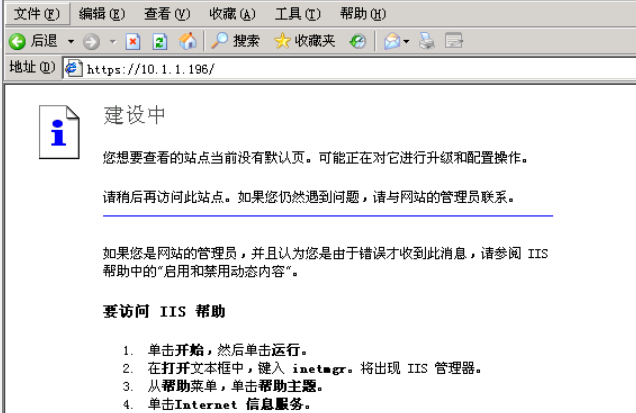 在“CA服务器”中打开已经申请了HTTPS服务的网站, 输入https://10.1.1.196 (按照实际情况),会出现一个证书安全问题的确认,单击“是”,进行浏览,可以看到能够通过HTTPS协议浏览。
