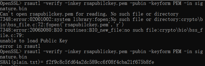 (3)利用上述私钥对摘要digest.txt进行签名,生成签名文档signature.bin
