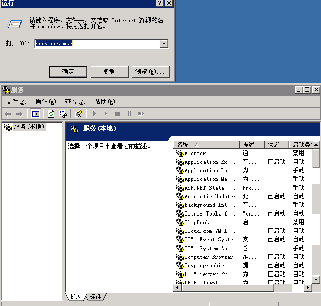 首先打开运行,输入tlntsvr /service,启动Telnet服务程序,再打开运行,输入services.msc,打开服务管理程序。