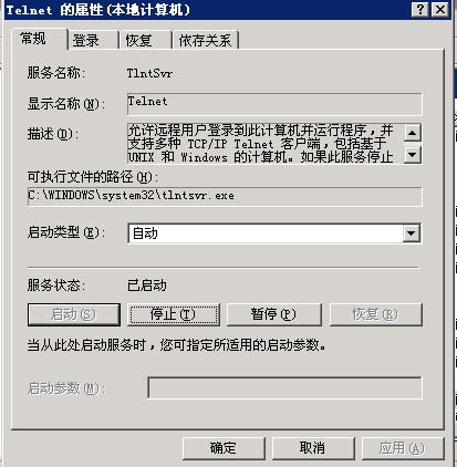 找到Telnet服务,然后更改启动类型为自动,并且启动Telnet服务