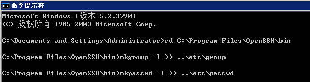mkpasswd -l >> ..\etc\passwd(导入本地用户名和密码)