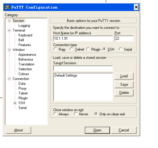 Client:打开putty,输入server的IP,点击open