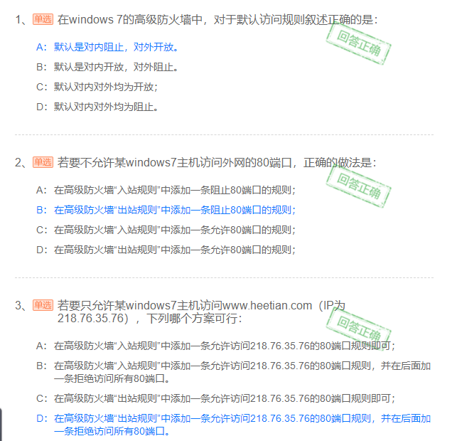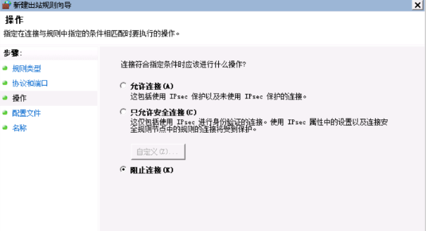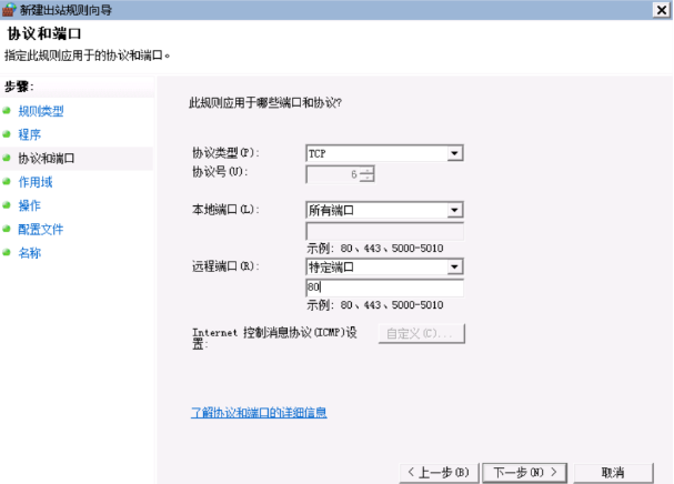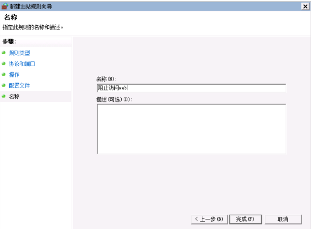 设置出口规则为“阻止对80端口的TCP连接”(即禁止访问Web服务器)。