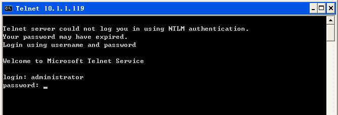 (8)新建一个cmd环境进行telnet登录:telnet 10.1.1.119