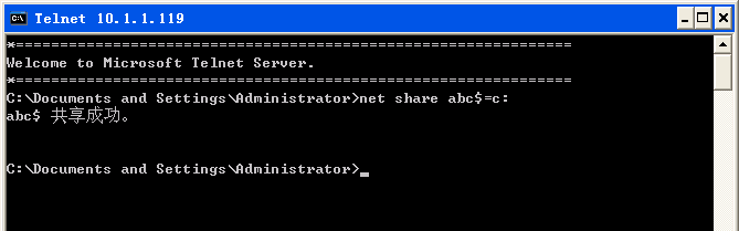 (9)登录后便可进行共享等相关操作,net share建立c$共享