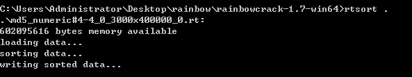 切勿中断rtsort程序; 否则被分类的彩虹表可能会被损坏。