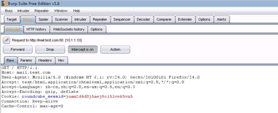 1、配置好IE代理,截取数据包。