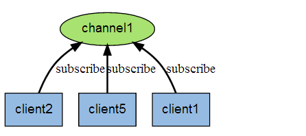 下图展示了频道 channel1 , 以及订阅这个频道的三个客户端 —— client2 、 client5 和 client1 之间的关系: