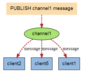 当有新消息通过 PUBLISH 命令发送给频道 channel1 时, 这个消息就会被发送给订阅它的三个客户端: