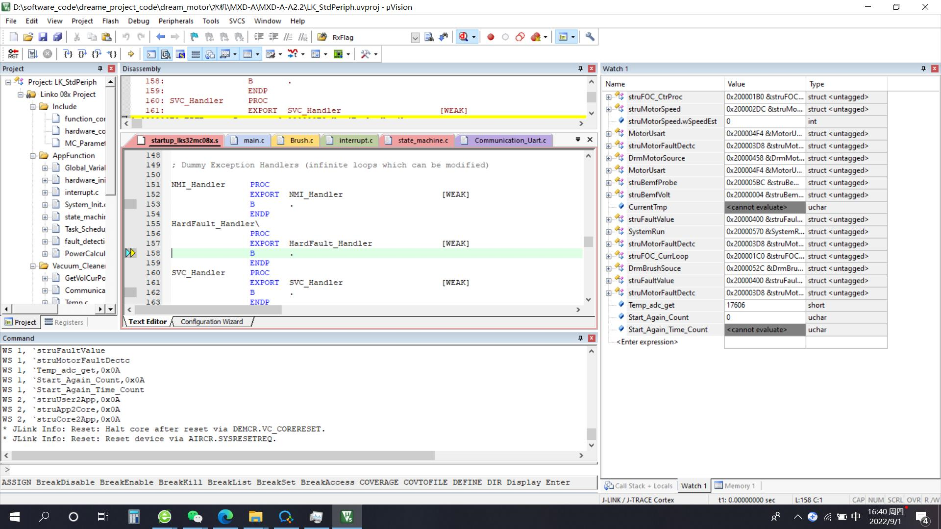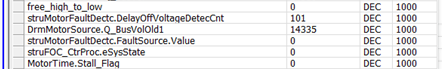 HardFaultHandler 一直进入该系统中断,导致其他比它优先级更低的程序无法得到执行,因此这样也就解释了当我们手动在Freemaster启动电机时,电机也无法启动的原因。
