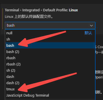 3. vscode默认的是tumx的终端,可以切换成bash