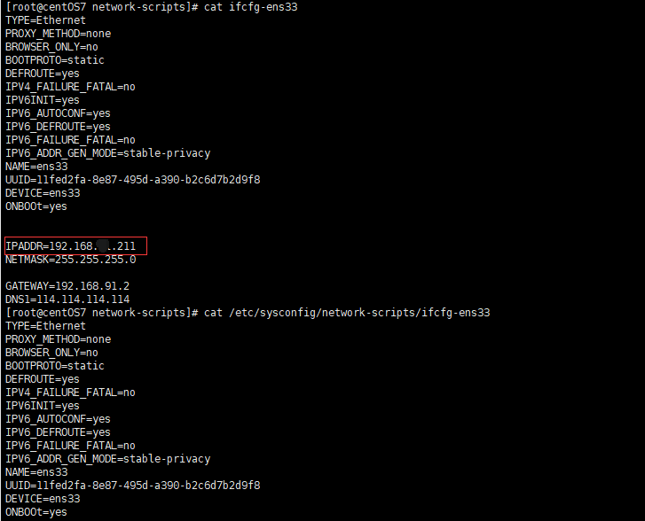 # cat /etc/sysconfig/network-scripts/ifcfg-ens33