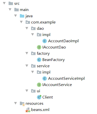 <bean id="accountService" class="com.example.service.impl.AccountServiceImpl"></bean>