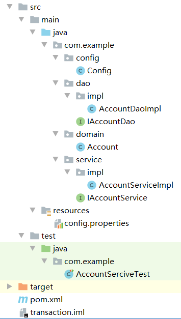 package com.example.service; import com.example.domain.Account; public interface IAccountService { Account findAccountById(int id); Account findAccountByName(String name); void updateAccount(Account account); void transfer(String sourceName,String targetName,float money); }
