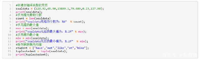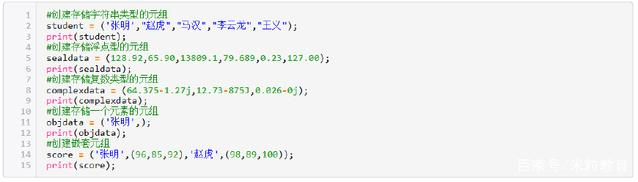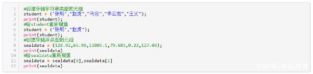 声明一个元组并赋值的语法与列表相同,不同之处是元组使用小括号,列表使用方括号,元素之间也是用英文逗号分隔。需要注意的是,当元组只有一个元素时,