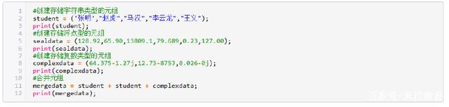 可以把多个元组合并成一个元组,合并后的元组元素顺序保持不变。合并后的元组为一个新的元组,原有的元组保持不变。