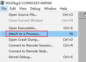 - 启动windbg,点击"File"中的"Attach to a Progress"