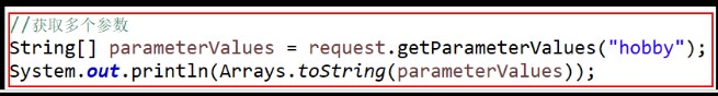 2、获取一个请求参数的多个值:request.getParameterValues("参数名称"),返回的是一个数组;如图: